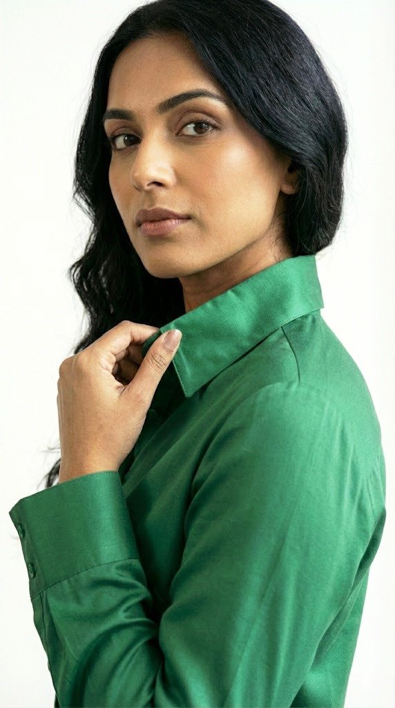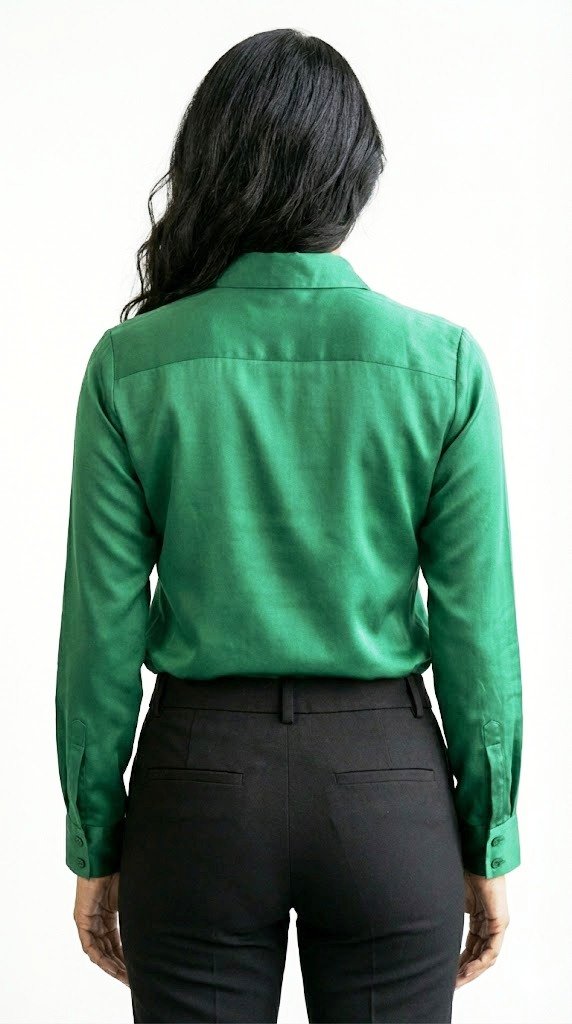 Color bottle green Casual & office wear Classic shirt collar Regular button placket Full sleeves with long cuffs Curve hemline