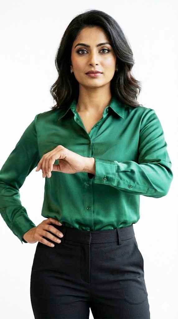 Color bottle green Casual & office wear Classic shirt collar Regular button placket Full sleeves with long cuffs Curve hemline